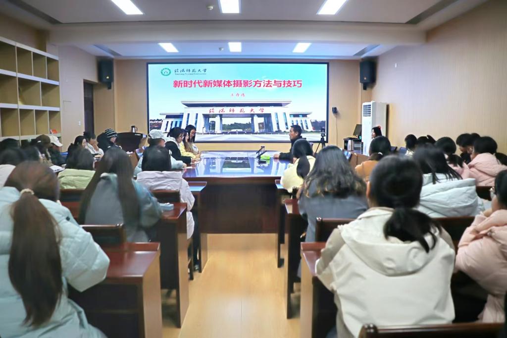 本次讲座旨在培训和提高新媒体学生的新闻摄影技能。王存选和同学们分享了自身的求学经历,向同学们讲述了“一辈子只做摄影一件事,只有发挥工匠精神,才能将摄影技术掌握熟练”。讲座中,他以“摄影构图”为主题,细致生动讲述了构图要素,构图释义,以及画面布局的章法,从宏观出发,高效地让听众了解摄影的诀窍。讲解摄影构图时,他为同学们介绍了摄影作品中的九宫格构图法中的“黄金分割点”;讲述画面布局的章法时,他通过不同风格的摄影作品作为案例,详细分析讲解,帮助同学们进一步学习拍摄技巧。最后,王存选结合自己多年的摄影工作经验,强调新闻摄影要兼顾纪实性、瞬间性和艺术性,以敏锐的洞察力、丰富的感知力,高质量地完成拍摄任务。
