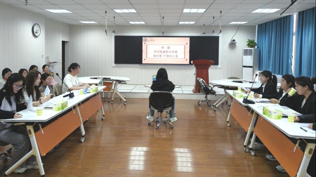 比赛紧扣社会热点,以“学历贬值的大环境下,要不要向上‘内卷’”为辩题展开辩论。正方从“学历通胀倒逼个体提升竞争力”切入,引用“大厂简历筛选率不足5%”“硕博毕业生数量十年翻倍”等数据,强调主动内卷是应对资源稀缺的必要策略。反方则以“无效竞争加剧社会焦虑”为矛,结合“35岁职场危机”“教育军备竞赛掏空家庭”等案例,呼吁建立多元评价体系以突破内卷陷阱。自由辩论环节,双方就“内卷的本质是努力还是异化”“学历与能力的价值权重”等议题短兵相接,金句频出,引发观众深度共鸣。