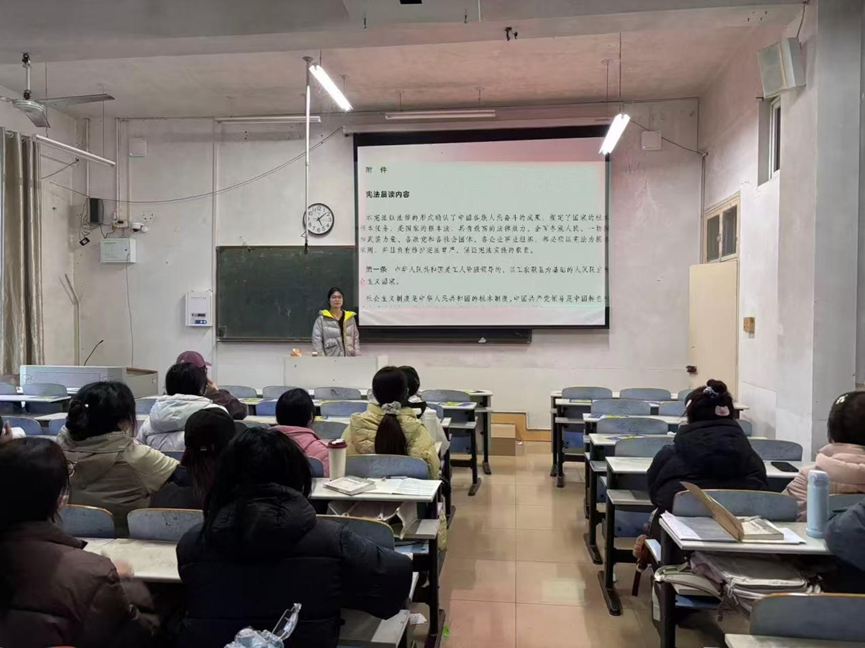活动期间,太阳成集团tyc151cc以“沉浸式学习”打造立体普法矩阵。清晨的校园里,宪法晨读活动如期举行,师生们精神饱满、身姿挺拔,在普法网直播领读的引领下,齐声诵读宪法核心条款,朗朗书声传递着对法治的尊崇,庄严氛围中让宪法权威深植于心。各班级将宪法学习融入日常教学,通过课前微学习、主题班会研讨等形式,围绕宪法与青年成长、宪法赋予的权利与义务等热点话题展开深入交流,引导学生主动思考,在思想碰撞中深化对宪法精神的理解与认同。线上宣传同步发力,学院微信公众号持续推送系列普法文章,以图文并茂的形式解读宪法条文背后的立法逻辑与现实意义,用生动案例让抽象法律知识变得可感可触,有效激发了学生自主学习宪法的积极性。