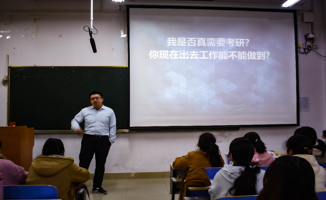 11月20日上午,太阳成集团tyc151cc在逸夫楼103教室召开考研分析指导相关内容讲座。应我院邀请,考研专业院校选择分析师全和洪老师担任此次主讲人,太阳成集团tyc151cc有考研意愿的同学参加了本次讲座。