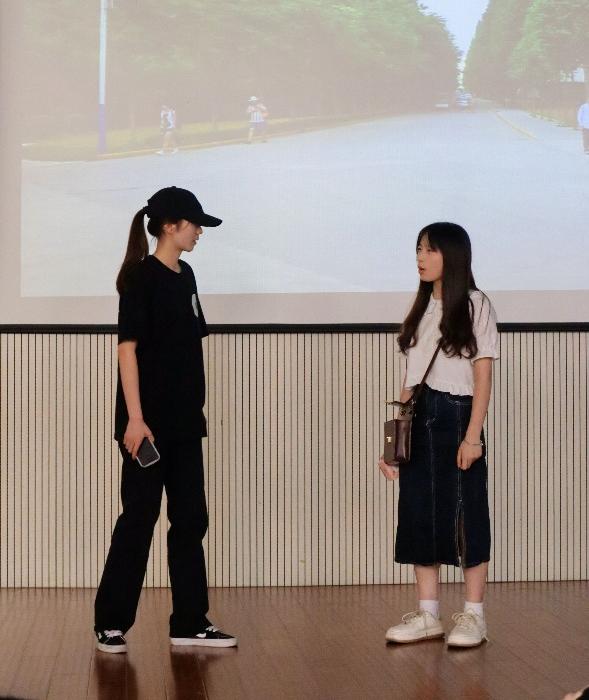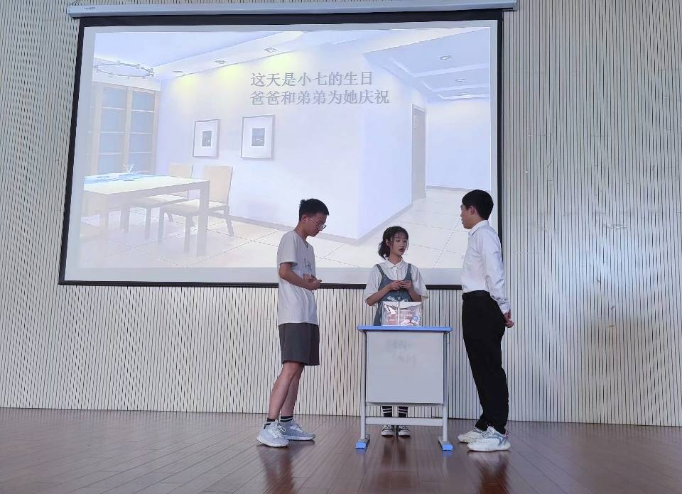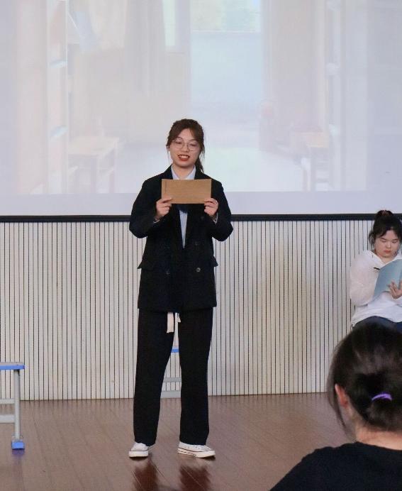 随后,由汉语言文学四班同学带来的《巧克力的执念》,以多子女家庭的视角出发,女儿初中生日时一块本属于自己的巧克力被弟弟抢走,而最终她也得到了本该属于自己的巧克力,表现出女儿的慢慢理解和父亲沉默的爱。由汉语国际教育班同学表演的《两个我》,揭示出校园暴力对青少年心理的极端影响,在故事的最后,主人公小希也在朋友的包容与理解下,逐渐好转。最后,创意写作班同学带来了《疫情封校下的日常》,让我们看到了在疫情的大背景下,被封在校园的学生起初懒散,但在逐渐找到了适合自己的节奏后,生活变得积极向上,也更加有意义。