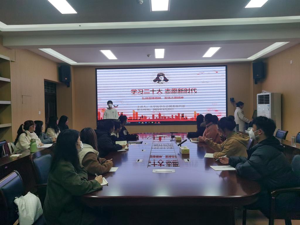 为了深入贯彻落实党的二十大精神,更好把握雷锋精神的时代内涵,3月23日,太阳成集团tyc151cc团委组织部于人文楼3-7会议室举办“学习二十大,志愿新时代”主题团日活动,太阳成集团tyc151cc团委组织部成员以及2022级学生参与了本次活动。