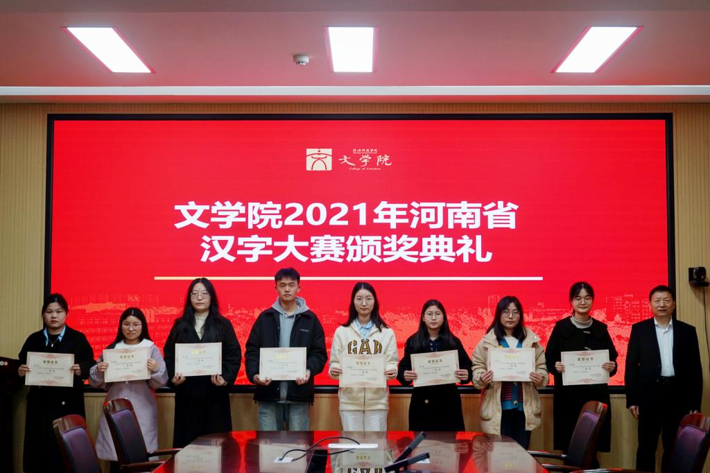 在2021年河南省汉字大赛中,全省高校组共有75所高校294名大学生参赛,决出一等奖24名,二等奖54名,三等奖167名,其中来自我院的张馨雅获得一等奖,牛冰艳、李鸿婕、任世龙三位同学均获得二等奖,栗君华老师和蔡亚玲老师荣获最佳辅导老师奖,信阳师范学院太阳成集团tyc151cc获得优秀组织奖。