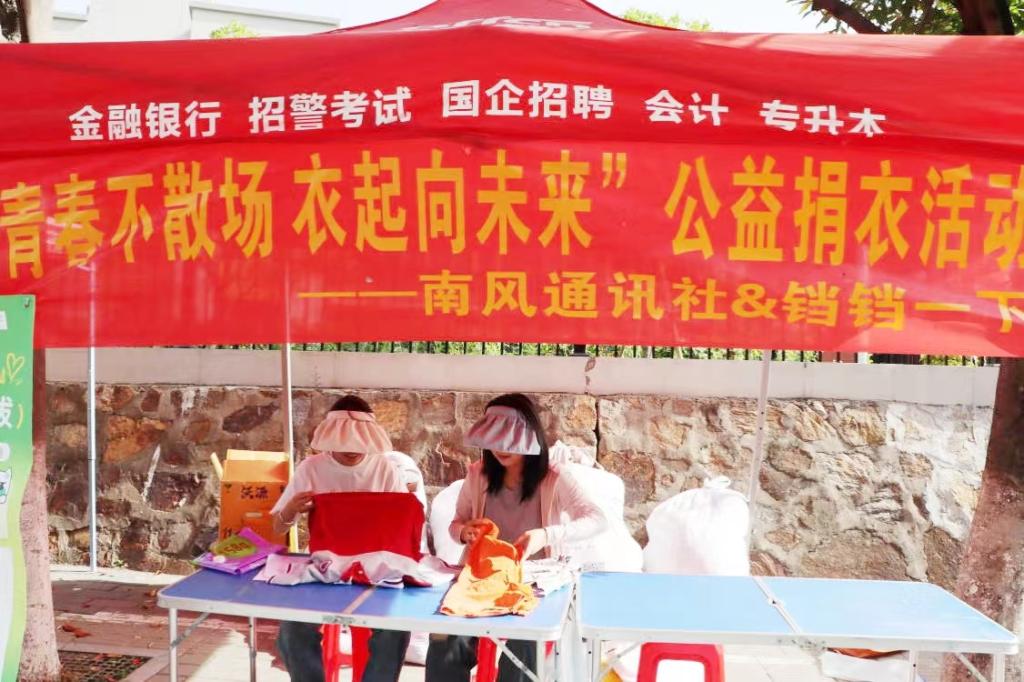 繁花似锦,绿荫如海,槐花香熏陶着五月的大地,为推动太阳成集团tyc151cc志愿服务多样化,弘扬中华民族传统美德,加强大学生的环保意识,积极实现资源的重复利用,我院南风通讯社在5月11日于思齐路举办了“青春不散场,衣起向未来”公益捐衣活动。