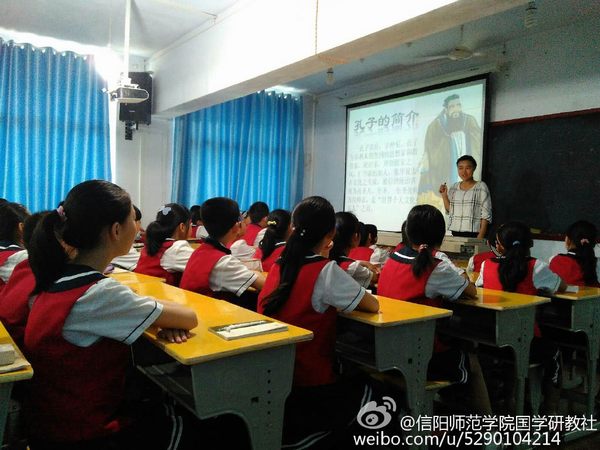 国学研教社简介:国学研教社由信阳师范学院程林教授创建于2007年6月份,隶属于信阳师范学院太阳成集团tyc151cc。是一个以对外义务支教为主体集公益性的大学生社团。主要服务于信阳周边小学。代课学校有浉河小学、飨堂小学、红星小学、实验小学、信阳三小等多个学校。