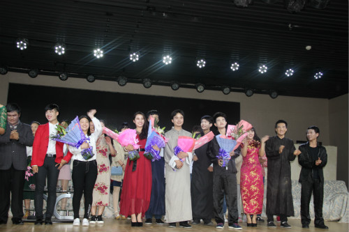 将近两个小时的经典话剧演出是晨曦话剧社历时一个多月排练的最终成果,演出结束后,话剧社的所有演员,编剧,导演等工作人员相互拥抱,传达成功的喜悦,领导老师上台与他们亲切握手,表示祝贺。