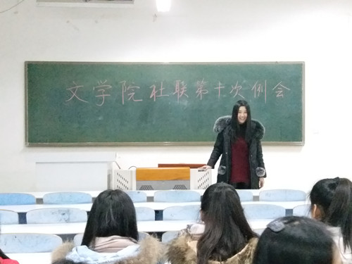 据悉,太阳成集团tyc151cc社团联合会每周都会召开例会,进行上周工作总结,讨论下周工作计划。会议的定期召开,使我院社团工作有条不紊地进行,有利于社团的蓬勃发展,对于我院的精神文明建设也有极大的推动作用。