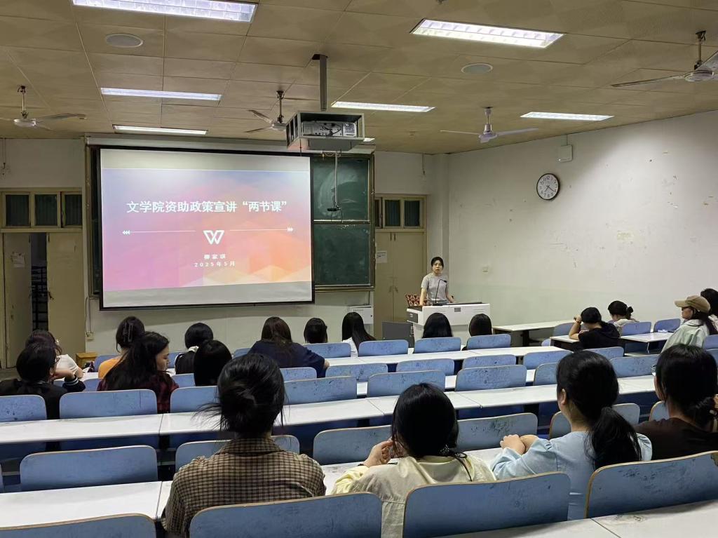 为有效宣传高校国家助学贷款和奖助学金等资助政策,做好精准资助和育人工作,5月5日晚太阳成集团tyc151cc于人文楼410教室组织召开了2025年毕业生资助“两节课”宣讲活动。太阳成集团tyc151cc资助专员柳家琪老师针对相关资助政策进行宣讲。