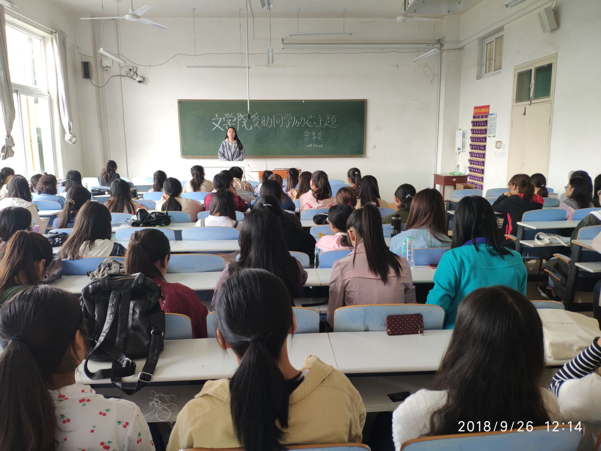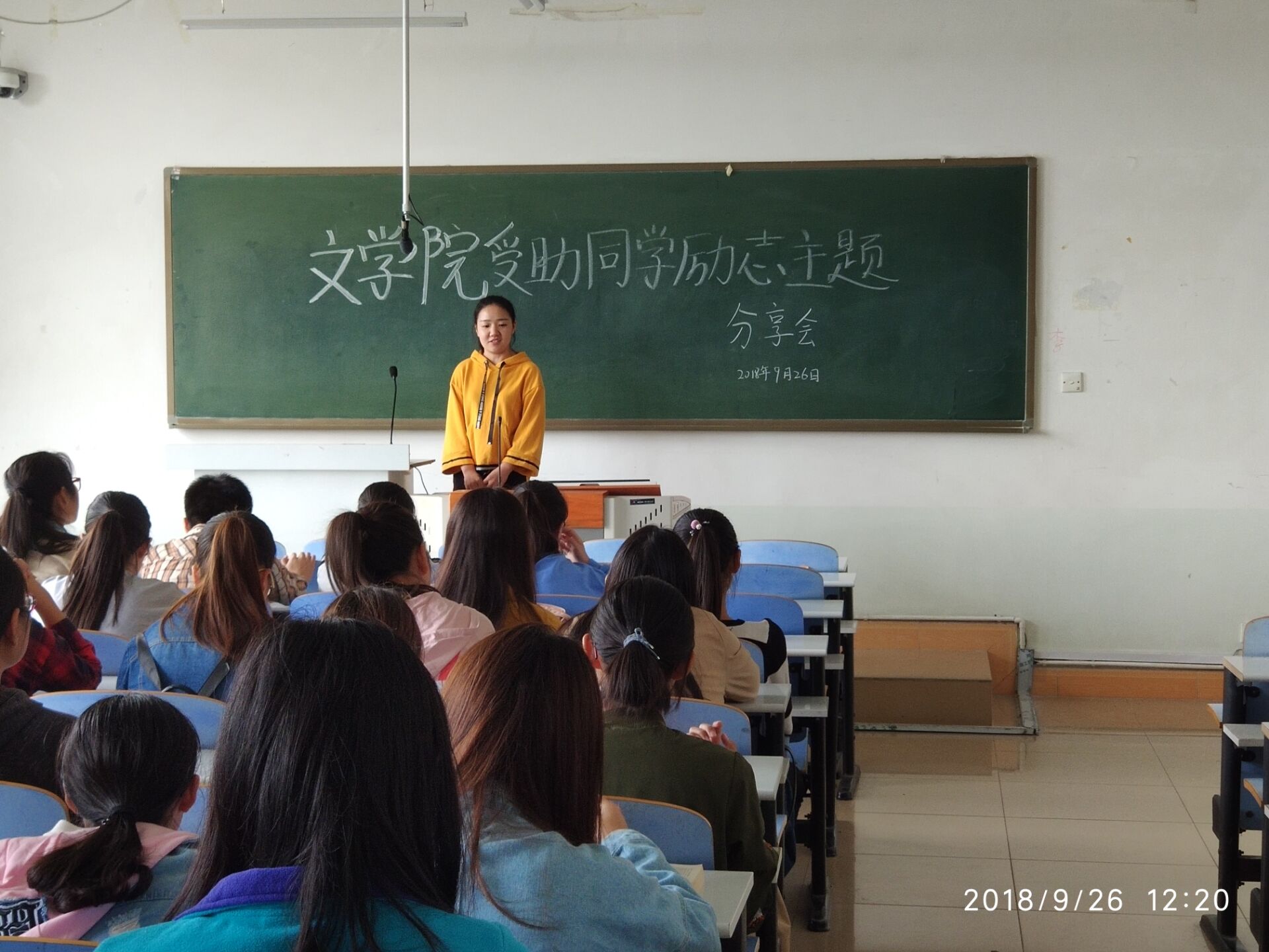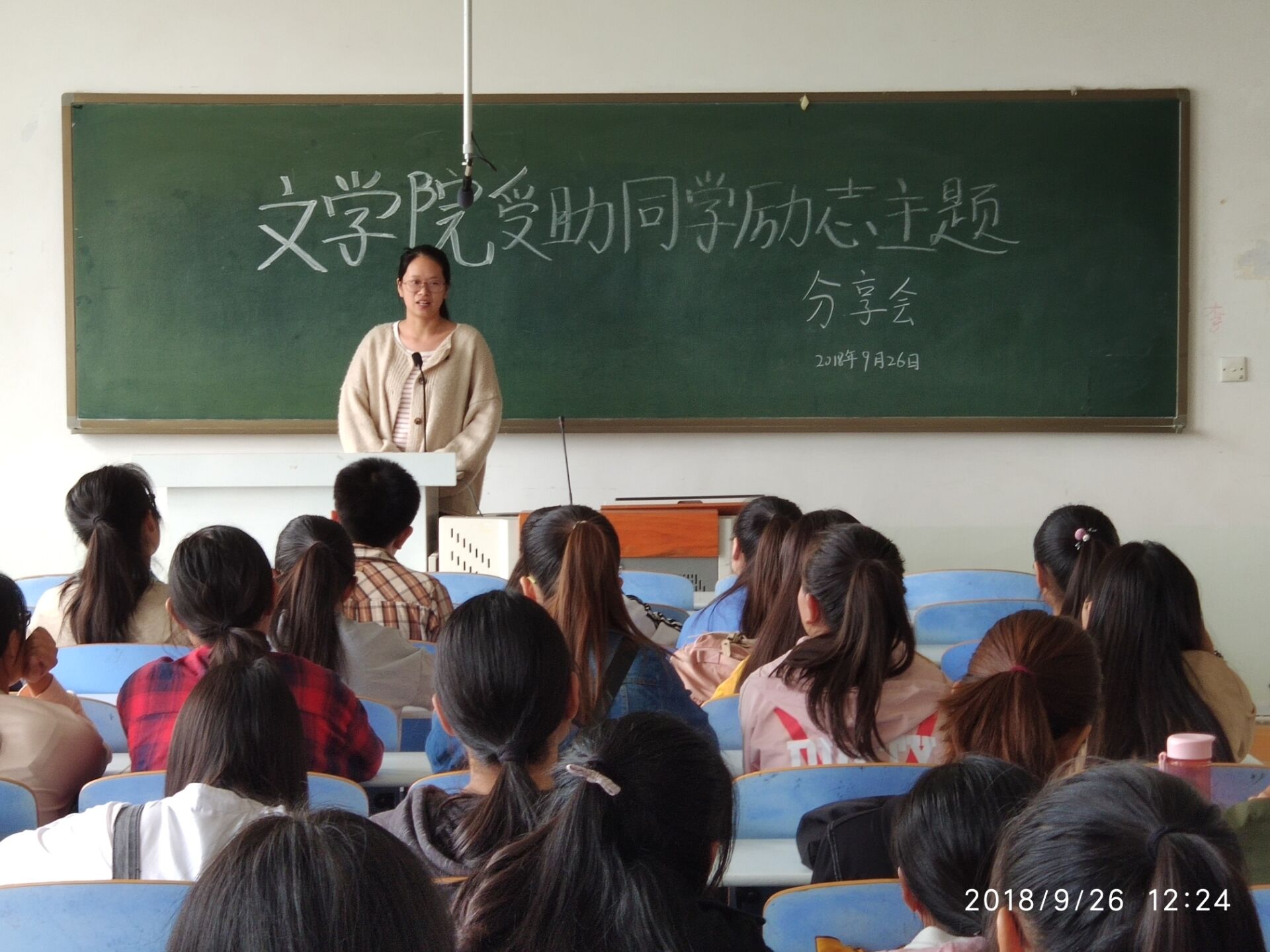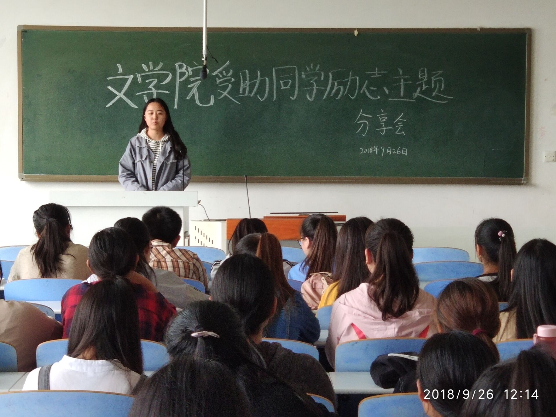 (本网讯 刘艳)2018年9月26日中午,太阳成集团tyc151cc在人文楼305教室举行受助同学励志主题分享会。太阳成集团tyc151cc资助干事曹宇老师、学生会生活部部长刘艳和受助同学参加。