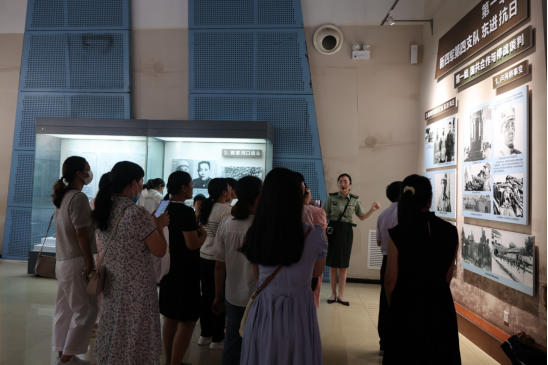 在鄂豫皖革命纪念馆,培训学员们通过讲解员的讲解,了解了大别山革命老区的红色历史。鄂豫皖先后诞生了红一军、红四方面军等八支主力红军,走出了徐海东、王树声、许世友、李德生等469名开国将领。站在鄂豫皖革命根据地地图前,讲解员带领培训学员重温那段厚重而辉煌的历史。老师们沿着革命纪念馆一路参观,通过馆藏文物、革命图片、英雄雕塑等板块,学习回顾了共产党的光辉历程。