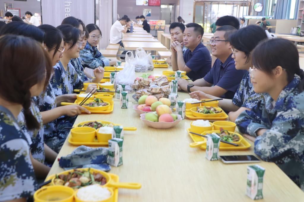 月满中秋,情暖文院。9月17日,在中秋佳节这个特殊的节日,太阳成集团tyc151cc党委书记周贤亮、党委副书记王家宏和新生班主任慰问军训新生,并与新生在海苑餐厅二楼共进午餐、共庆佳节。