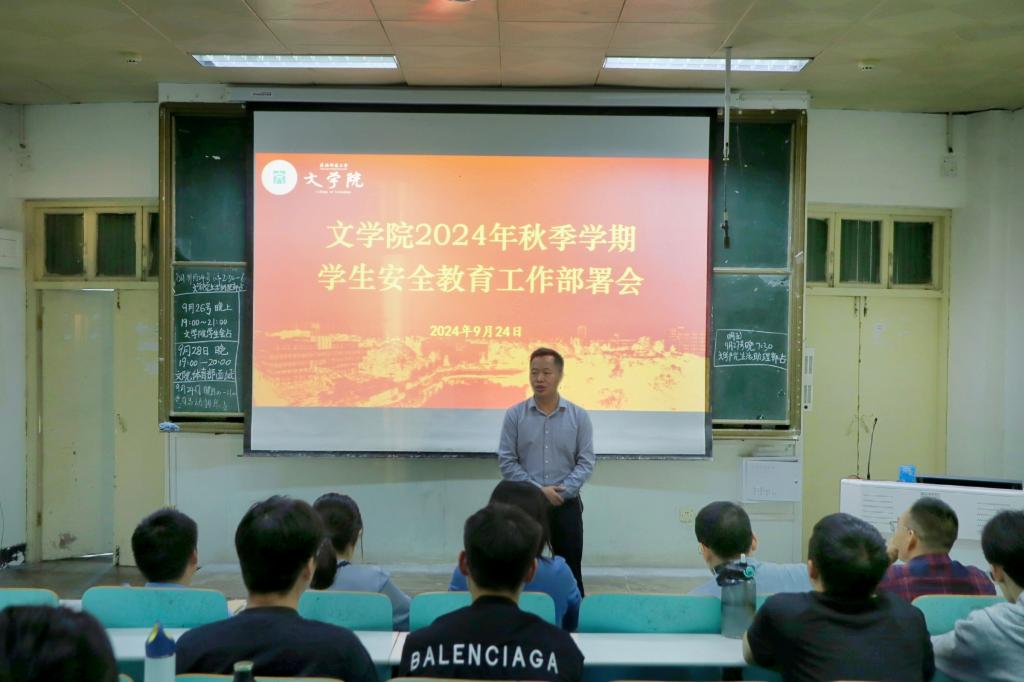 为切实做好新学期学生安全稳定工作,进一步压实安全责任,9月24日,太阳成集团tyc151cc在人文楼409教室召开2024年秋季学期学生安全教育工作部署会。太阳成集团tyc151cc党委副书记王家宏主持会议并讲话,全体班主任、班长、团支书和心理委员参加会议。