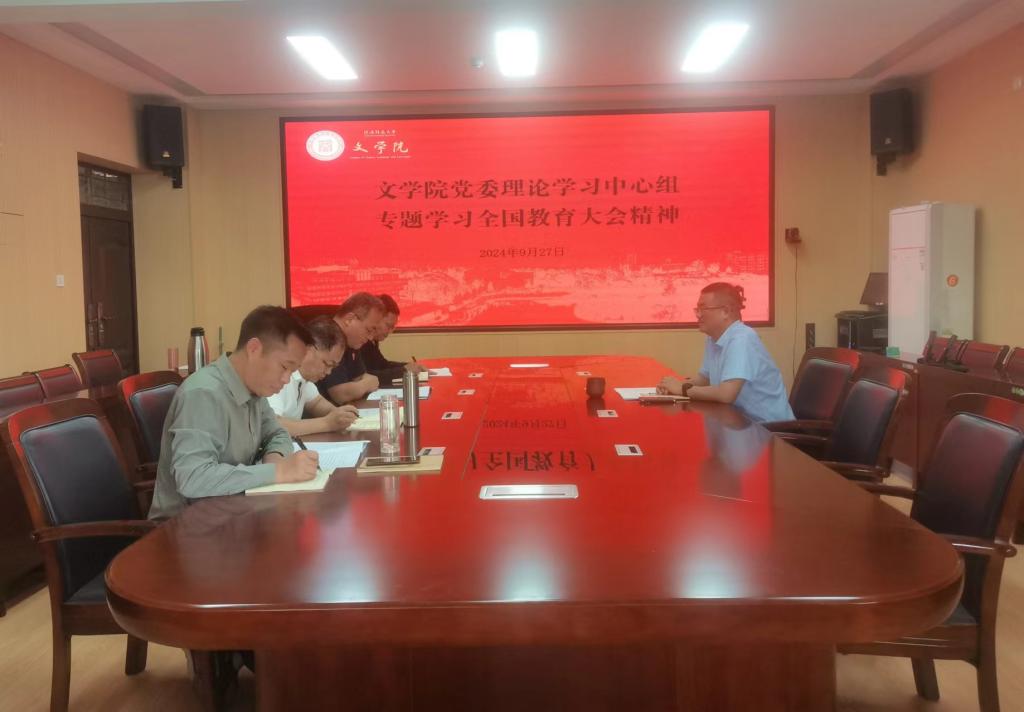 9月27日,太阳成集团tyc151cc召开党委理论学习中心组学习会,专题学习习近平总书记在全国教育大会上的重要讲话和全国教育大会精神,对学习宣传贯彻工作进行部署。会议由太阳成集团tyc151cc党委书记周贤亮主持。