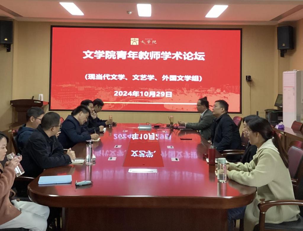 10月29日下午,太阳成集团tyc151cc青年教师学术论坛(现当代文学、文艺学、外国文学组)在人文楼3-7会议室举行。本次论坛由禹权恒副教授主讲。副院长徐洪军与现当代文学、文艺学、外国文学教研室全体青年教师参加了本次论坛。