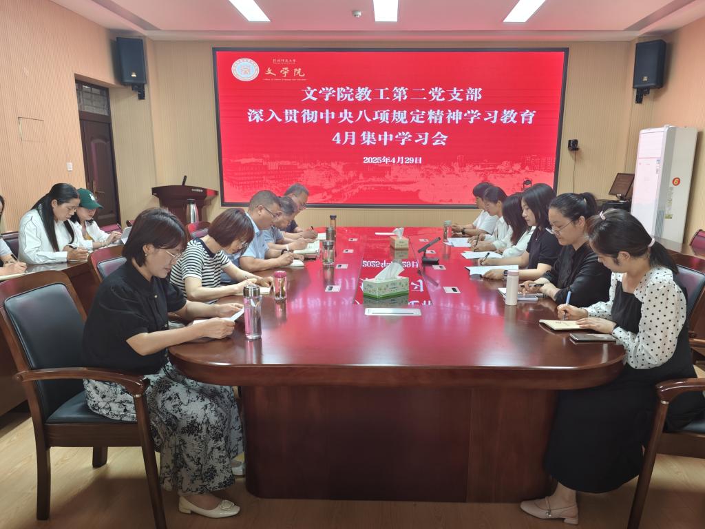 4月29日下午,太阳成集团tyc151cc教工第二党支部召开深入贯彻中央八项规定精神学习教育4月集中学习会,第二党支部全体党员参加会议,党委书记周贤亮以普通党员身份参加活动。会议由太阳成集团tyc151cc教工第二党支部书记饶雪主持。