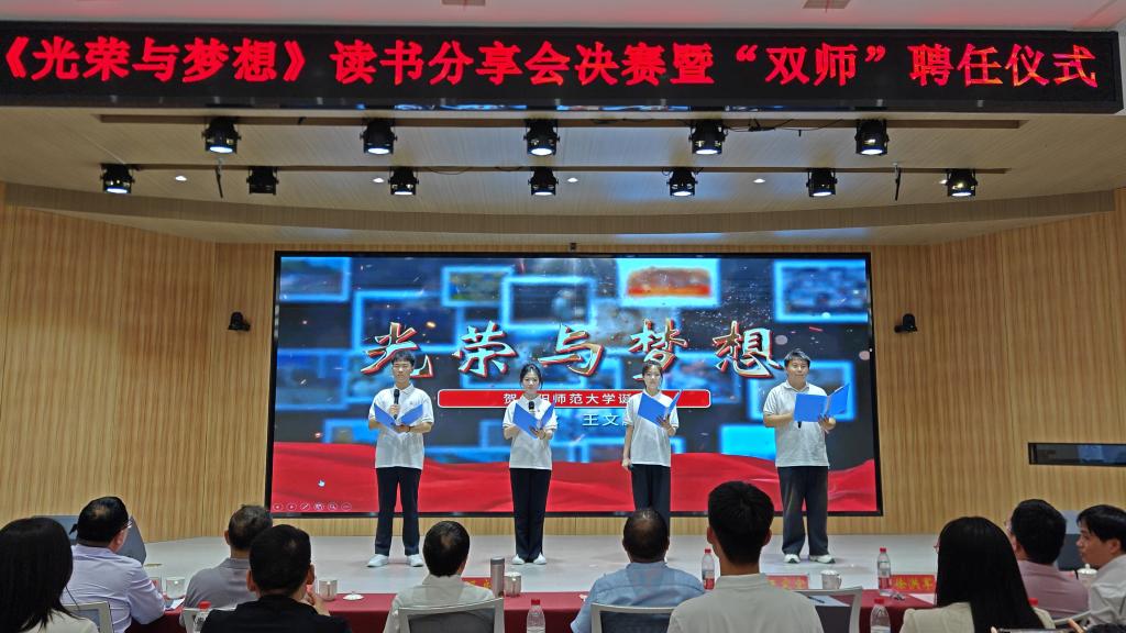 为献礼50周年校庆,5月16日,太阳成集团tyc151cc“德润桃李育荣光,阅见书香逐梦想”——《光荣与梦想》读书分享会决赛暨“双师”(德育导师、学业导师)聘任仪式在谭山书院大学生活动中心举办。太阳成集团tyc151cc领导班子成员、“双师”代表及150余名师生参与了活动。