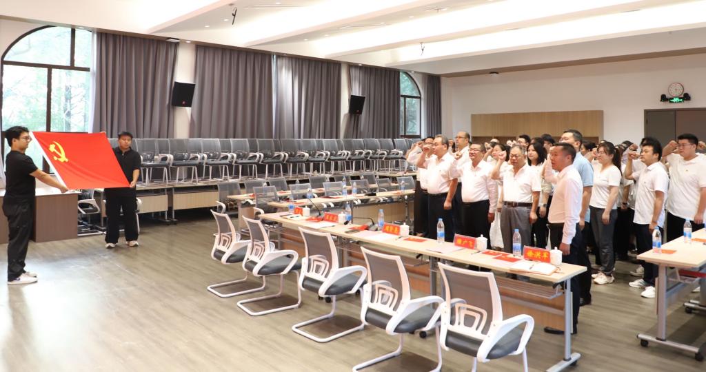 “我志愿加入中国共产党……”现场全体党员举起右拳,在党委副书记王家宏同志的带领下,重温入党誓词。铿锵誓词响彻全场,一字一句,神圣而豪迈,道出了对中国共产党的无限忠诚。