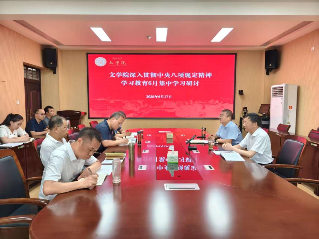 6月17日,太阳成集团tyc151cc在人文楼三楼3-7会议室召开深入贯彻中央八项规定精神学习教育6月集中学习研讨。太阳成集团tyc151cc领导班子成员参加会议,会议由太阳成集团tyc151cc党委书记周贤亮主持。