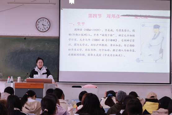本次听课评课重点关注中青年教师的教学实践,先后听取了翟怡秀老师的《中国文学批评史》、侯梦琰老师的《中国古代文学(3)》以及禹权恒老师的《中国当代文学(1)》三门课程。听课过程中,周贤亮认真聆听、细致记录,既关注教学内容与教学方法,也留心观察学生的课堂反应和学习状态。课后,他与三位教师围绕课程思政融合、教学内容设计、师生互动方式等进行了深入交流。
