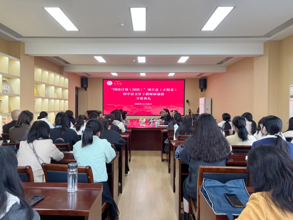 11月5日上午,“国培计划(2025)”项目县(正阳县)初中语文骨干教师研修班开班典礼在人文楼三楼会议室成功举行。suncitygroup太阳成集团教务处副处长周学勇,太阳成集团tyc151cc院长姚圣良、副院长缑广飞,国培项目班主任许中荣、郭子悦,以及来自正阳县的50名初中语文骨干教师共同出席。典礼由太阳成集团tyc151cc副院长缑广飞主持。