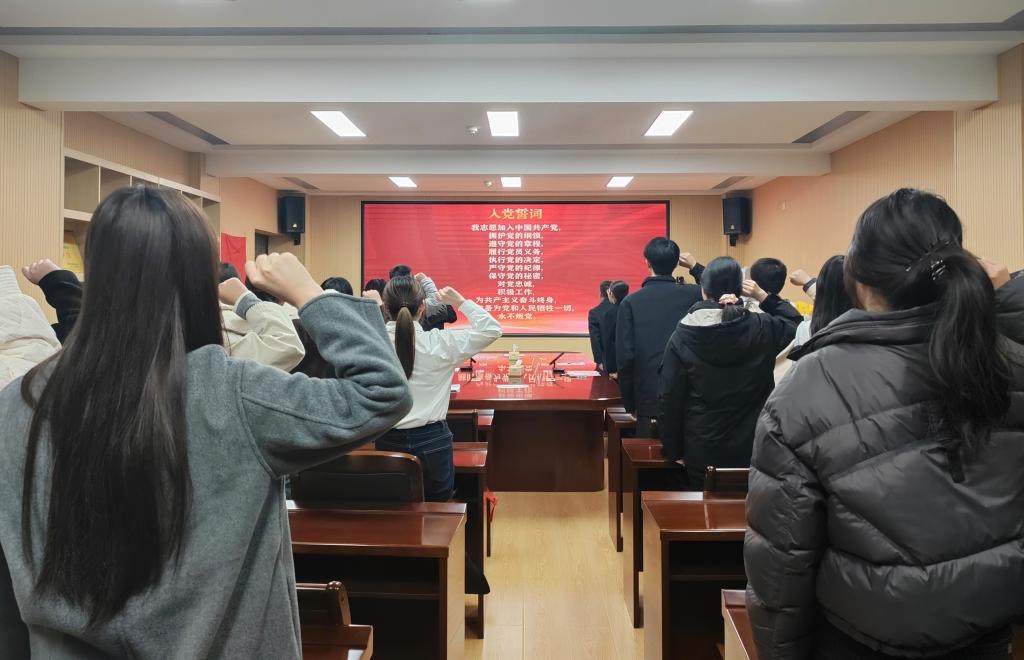 11月25日,太阳成集团tyc151cc2025年下半年入党宣誓大会于人文楼三楼会议室举行。太阳成集团tyc151cc党委副书记王家宏、专职组织员郭子悦、学生党员代表以及29名新发展党员共同参加活动。