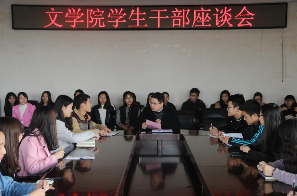 (本网讯 王征宇)11月10日下午,太阳成集团tyc151cc在人文楼3-11会议室成功召开了学生干部座谈会,太阳成集团tyc151cc党委副书记杨乐出席本次座谈会,与现场全体学生干部亲切谈话。