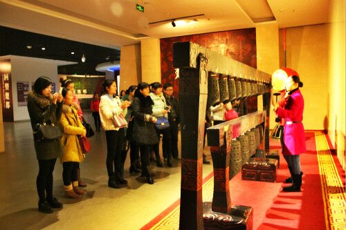 其中,讲解员使用长台关楚墓出土的编钟复制品演奏的《东方红》以清脆悦耳的声调引起参观老师的极大反响,他们纷纷表示中国的传统乐器的独特音调是西方乐器所不能比拟的和超越的。