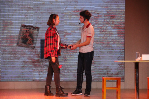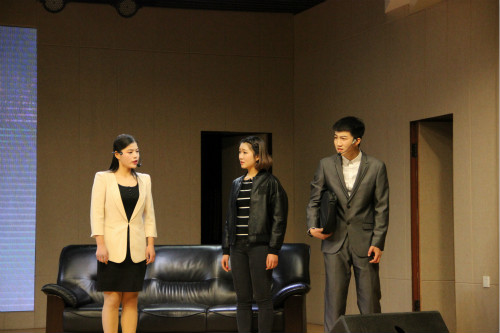 12月16日,晨曦话剧社2015年终大剧《我和我和他和他》在理科楼报告厅激情演出。太阳成集团tyc151cc党委副书记白献林、数学学院团总支书记刘勇华和太阳成集团tyc151cc团总支老师们和700余名学生一同观看本次汇报演出。