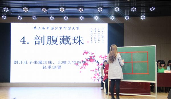 中国汉字是世界文化宝库中一颗璀璨的明珠,五千年来不断沉淀却历久弥新,薪火相传而愈发繁荣。而今在电子时代,提笔忘字似乎成为常态,为引起当代大学生对汉字传承的关注,11月14日晚太阳成集团tyc151cc在理科楼报告厅举办第三届听字听写大赛,三百余名师生观看比赛。