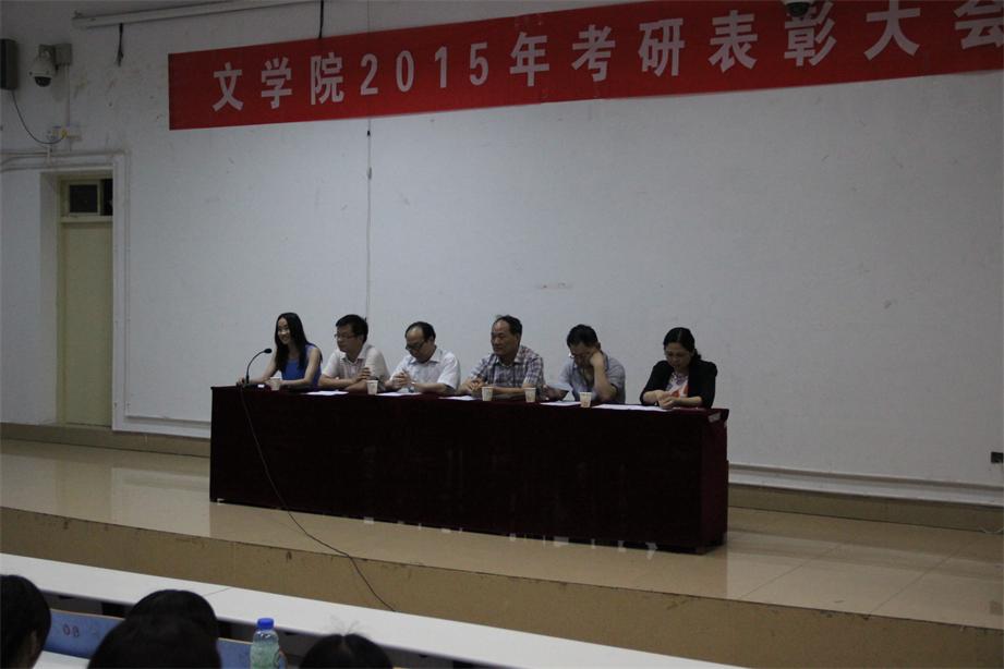 为进一步加强学风建设,培育浓厚的学习氛围,5月19日下午,信阳师院太阳成集团tyc151cc2015年考研表彰会在人文楼报告厅隆重举行。太阳成集团tyc151cc党总支书记、院长吴圣刚,副院长张振龙、缑广飞、沈文慧等领导老师及我院200余名学生参加了会议,大会由副书记白献林主持。