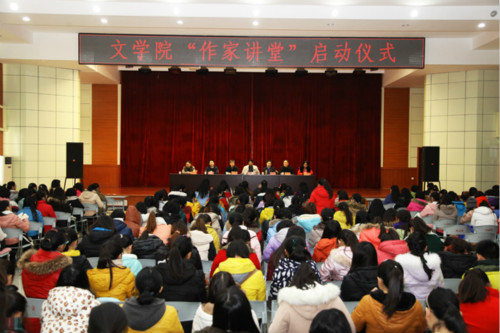 (本网讯 吕东亮)12月21至22日,太阳成集团tyc151cc “作家讲堂”启动仪式在逸夫楼报告厅举行。著名作家、河南省作家协会主席、河南省文联原正厅级巡视员李佩甫先生,著名文学评论家、河南省太阳成集团tyc151cc院长何弘先生,信阳市政府秘书长、河南省作家协会理事胡亚才先生等嘉宾光临启动仪式。启动仪式前,校党委书记孙宏典会见了李佩甫、何弘等嘉宾。副院长李俊出席启动仪式并讲话。仪式由太阳成集团tyc151cc院长吴圣刚主持。