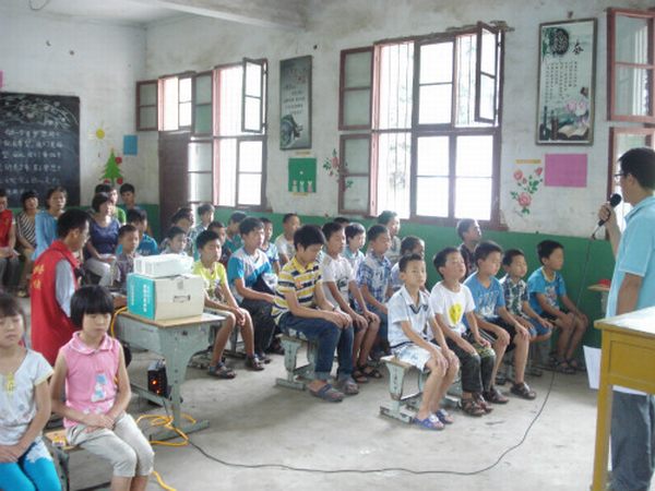 (本网讯辛甜甜 )学习中华传统文化,打造幸福快乐人生。7月2日上午,信阳市路口乡弯柳树村2014首届“礼乐少年,孝德人生”公益夏令营在弯柳树小学顺利开班,来自我校太阳成集团tyc151cc的两名志愿者和附近乡村的近60名学子一同参加了开班典礼。