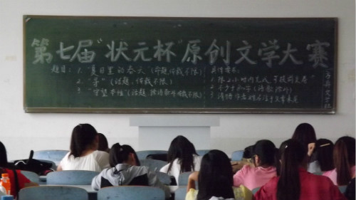 本次比赛严格遵循公开、公平、公正的原则。比赛开始,监考人员简单介绍比赛规则之后,选手们就开始了紧张而激烈地写作。从现场看到,选手们镇定从容,凝思遐想,奋笔疾书。选手们经过两个小时的奋战,终于完成创作,踌躇满志地走出赛场。比赛结束后,方舟文学社邀请到远方文学社、文艺经典研讨社、清源诗社等文学社团的编辑作为评委对选手们的作品进行评审,评审结果随后将以展板的形式公布。