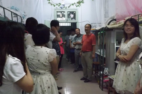 我院大四学生宿舍分布在2号楼、19号楼、21号楼,每走访一个宿舍,领导老师都热心询问同学们的考研情况、就业情况和未来规划。针对学生的一些困惑,他们帮助分析问题的关键,提出指导性的建议,并鼓励学生端正心态,积极面对,拼搏进取。在男生宿舍,吴圣刚寄言学子们无论走到哪里都要做负责任、勇担当的男子汉。白献林强调在最后这段时间同学们要遵守纪律,注意安全。在女生宿舍,领导老师们中了解到,同学们当中有成功考取北京师范大学研究生的,有顺利签约知名报社的,对此感到非常欣慰。吴圣刚大力表彰了同学们取得的优异成绩,鼓励大家再接再厉,争取在新的人生阶段取得更大突破。此外,领导老师们希望毕业生与母校保持紧密联系,关心学院发展,为母校贡献自己的一份力量。毕业生们纷纷表示会谨记老师的教诲,为母校增添光彩。毕业在即,领导老师走访学生宿舍,不仅有利于增进师生之间的感情,而且充分表现了我院领导对毕业生的关怀与重视,对切实保障毕业生的文明、顺利离校有重要意义。