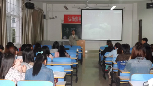 (本网讯 喻婷)为了庆祝五四青年节的到来,5月4日晚,太阳成集团tyc151cc2011级汉语言文学三班在逸夫楼101教室成功举办“诗朗诵”活动。太阳成集团tyc151cc杜昆老师与该班全体同学共同参加了此次活动。