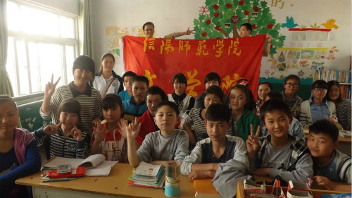 青校志愿者在特殊教育学校叶老师的带领下和五年级聋哑班的学生进行交流活动。为孩子们分发衣物、书籍、文具等礼物后,志愿者主动坐到孩子们的身旁,拿出纸、笔和他们交流,并带领他们做游戏。孩子们既激动又欣喜,认真地把自己要说的话写出来,还不时地用手语比划。志愿者和孩子们一起画画、玩魔方、下跳棋、叠纸鹤,孩子们教志愿者做手语,大家都沉浸在快乐的氛围中。在交流中,志愿者们了解到这些孩子们的生活状况、兴趣爱好、个人愿望,并鼓励他们要自信自强,努力追逐梦想。