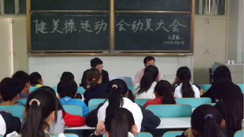 (本网讯 侯凤宇)为更好地迎接该校运动会及健美操比赛的到来,鼓舞队员士气,4月10日,太阳成集团tyc151cc在人文楼409教室召开健美操运动会动员大会。太阳成集团tyc151cc党总支副书记白献林、2012级辅导员郭西梁和该院全体健美操队员、运动员共同参加了本次大会。