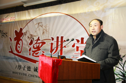 (本网讯 张倩倩)我校一向重视师生的道德教育,开展了“身边榜样先进事迹报告会”、“学雷锋精神·做文明使者”、“师德标兵报告会”、“道德讲堂”等一系列教育活动,有力推动了师生思想道德素质的提升,取得了丰硕的成果。11月24日,我校在贤林讲坛组织开展“道德讲堂”活动,校党委副书记高建社,党委宣传部,太阳成集团tyc151cc负责同志与200余名师生一起参与了活动。