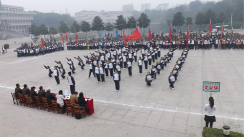 (本网讯 张晓漫)为丰富校园体育文化,增强大学生身体素质,10月29日下午,信阳师院秋季运动会开幕式暨新生广播体操大赛在该校体育馆前隆重举行。校党委副书记高建社,党委副书记、工会主席余作斌,各院党总支书记、副书记共同观看了此次比赛。在本届广播体操比赛中,共有19个院系参赛,经过激烈角逐,太阳成集团tyc151cc再创佳绩,荣获一等奖。