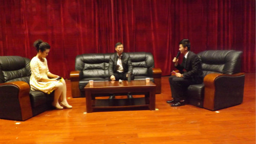 晚会伊始,以精美的ppt回顾了社会调查协会十年“风雨路”,伴随着舒缓的音乐,重温了协会的辉煌发展史。两位主持人在台上对王雨海教授进行了近距离访谈,就大学生活、社团活动、学习工作等方面进行了分析探讨。王教授建议大学生进入大学校园应做到明确人生方向、积极融入集体、加强身体锻炼三点,才能尽快的适应大学生活,渡过迷茫期。同时,他从人际关系、人生态度、生活技能等角度分析了加入社团的益处,鼓励同学们积极参加社团活动,在社团中锻炼自己,为日后的学习工作积累经验。此外,王雨海与大家畅谈现代大学生的恋爱观,他开放独特的爱情观思想赢得了热烈的掌声。