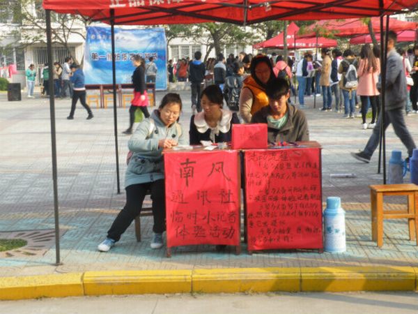 (本网讯 张晓漫)为让更多的学生走近记者生活,了解新闻采访工作,10月26日,值信阳师院第5届记者节到来之际,太阳成集团tyc151cc南风通讯社在八餐小广场举办“共话记者情之临时小记者体验”活动,邀请全校同学开展一次“体验记者”活动,大家踊跃参与,活动受到了同学们的热捧。