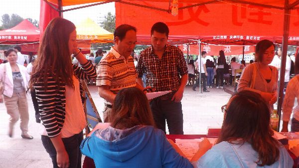 (本网讯 辛甜甜)9月7日上午,太阳成集团tyc151cc报名处接待了来自四边八方的2013级莘莘学子。太阳成集团tyc151cc院长、党总支书记吴圣刚,党总支副书记白献林,团总支书记冯正强及学院老师亲临迎新现场,询问工作安排和新生报到情况。
