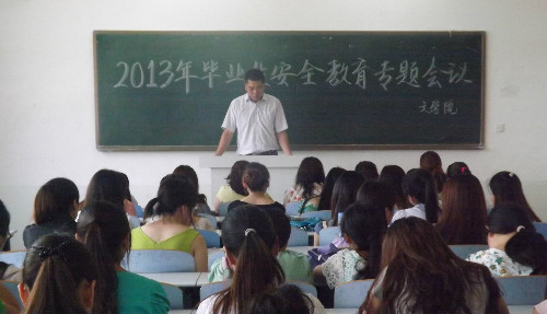 (本网讯 张倩倩 高笑蕊)临别重寄语,浓浓师生情。为了妥善解决毕业生离校后续问题,加强毕业生离校安全教育,5月22日,太阳成集团tyc151cc团总支书记冯正强在人文楼305教室主持召开了太阳成集团tyc151cc2013年毕业生安全教育专题会议,100余名2013届毕业生参加了此次会议。