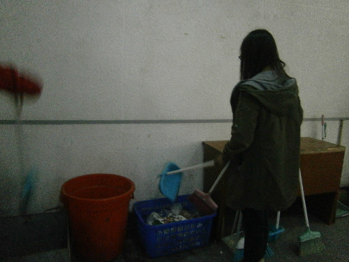 由于理科楼报告厅面积较大,大型晚会及青校党课多在此开展,学生流动频繁使得教室卫生打扫成为一个不可忽视的问题。