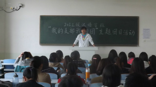 (本网讯 钱露露)为响应校团委的号召,引导广大青年学生牢固树立共产主义信仰,4月11日下午,太阳成集团tyc151cc2011级汉语言班在人文楼306教室举办“我的支部我的团”主题活动。该班60余名同学积极参与,一起分享了对大学校园生活的感受。