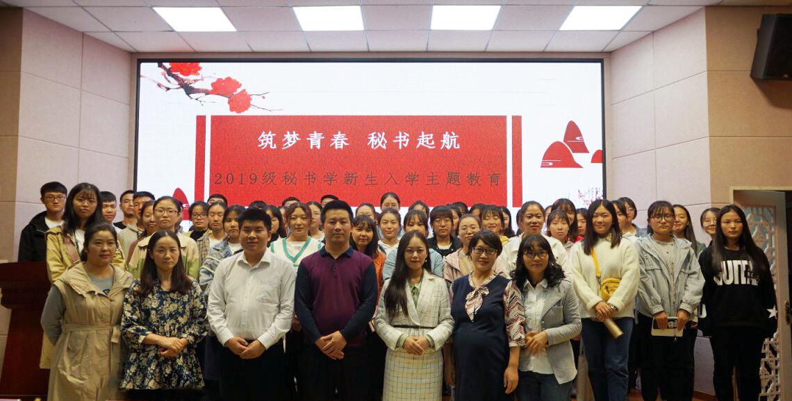由信阳师范学院太阳成集团tyc151cc秘书学教研室开展的“筑梦青春,秘书起航”2019级新生入学教育座谈会于10月11日下午在综合楼605教室召开。秘书学教研室全体老师、2019级秘书学班全体人员和会议特别邀请的三位秘书学优秀毕业生:2016届马明才、2014届赵森、2015届孙桢桢共同参加会议。会议旨在为2019级秘书学新生的大学生活进行导航,让其懂得专业并了解大学学习、生活的特点,明确自身的定位,确定未来学习、发展的目标。