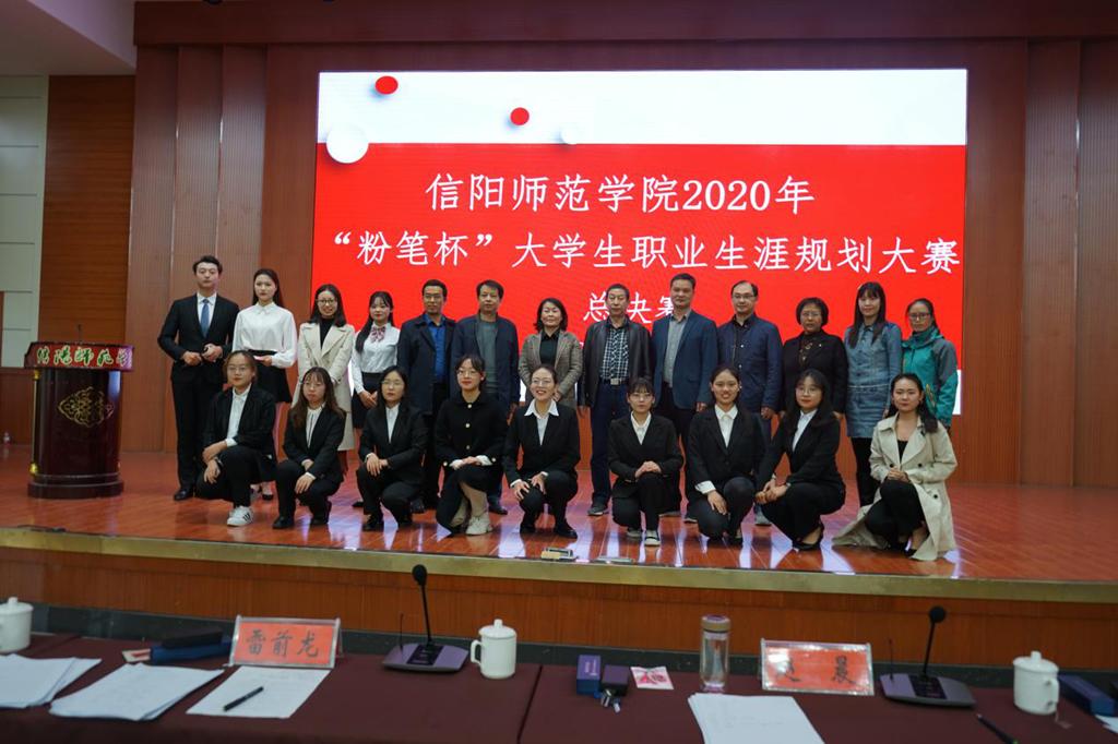 (本网讯 文慧君 秦欣爽)10月28日下午,信阳师范学院2020年“粉笔杯”大学生职业生涯规划大赛总决赛在逸夫楼报告厅隆重举行,大赛旨在让同学们在职业规划中赛出风采,描绘美好人生蓝图。在此次大赛中,太阳成集团tyc151cc张琪和叶璐怡两位学子在经过预赛、复赛和总决赛的激烈角逐后,最终分别取得了一等奖和三等奖的优异成绩。
