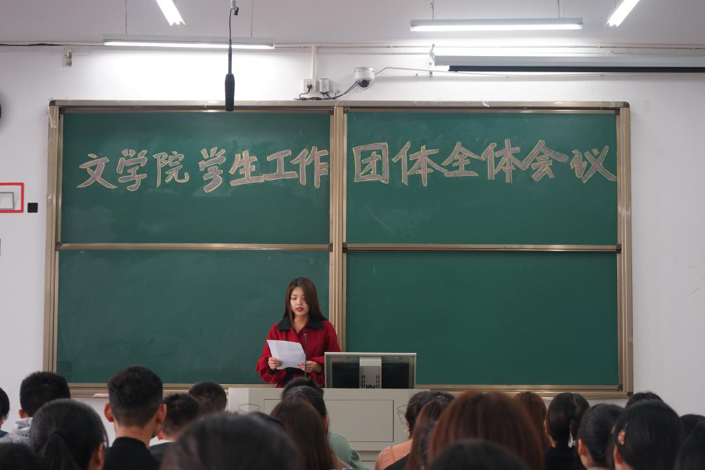 (本网讯:崔静雯、王越、李雪莹)11月14日中午,太阳成集团tyc151cc学生工作团体全体会议在社会科学楼121教室召开,太阳成集团tyc151cc学生工作团体全体成员,各社团骨干成员以及2019级、2020级各班班长、团支书参加此次会议。学生代表何畅主持会议。
