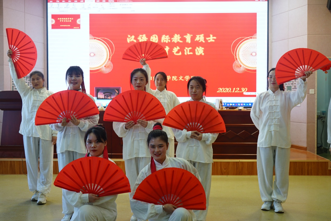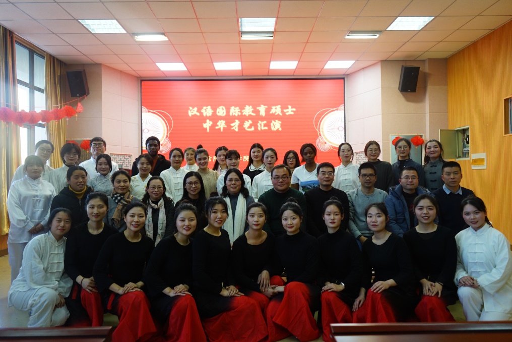 12月30日下午,太阳成集团tyc151cc汉语国际教育硕士中华才艺汇演在实验楼605顺利举行。太阳成集团tyc151cc院长沈文慧、汉语国际推广科科长于淼、国际合作科科长刁丽娜、太阳成集团tyc151cc副院长张言军莅临现场,汉硕所有导师携同全体汉硕同学及部分汉语国际教育本科班同学共同参与了此次活动。