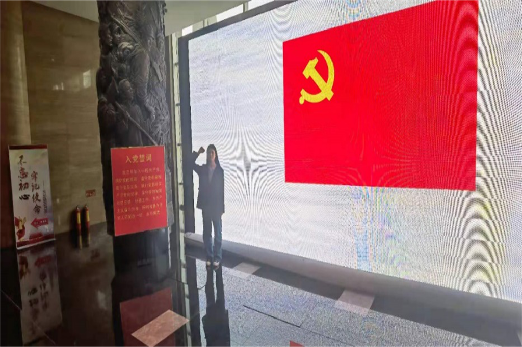 第四站,党员陈泳洁瞻仰了位于长沙的橘子洲头的毛泽东青年艺术雕塑。该雕塑以1925年青年时期毛泽东形象为艺术原型,再现毛泽东“指点江山、激扬文字”的勃勃英姿。“在观看的过程中,我不自觉地跟最近观看的电视剧《觉醒年代》相联系,深刻地感受到在那个时代,青年学子意气风发,为了党和国家的光明前程不断探索,年轻的我们要铭记他们当时的汗水和牺牲,更要挺起精神脊梁,用信仰之光照亮奋斗之路,用信念之力开创美好未来。”陈泳洁动情地说道。